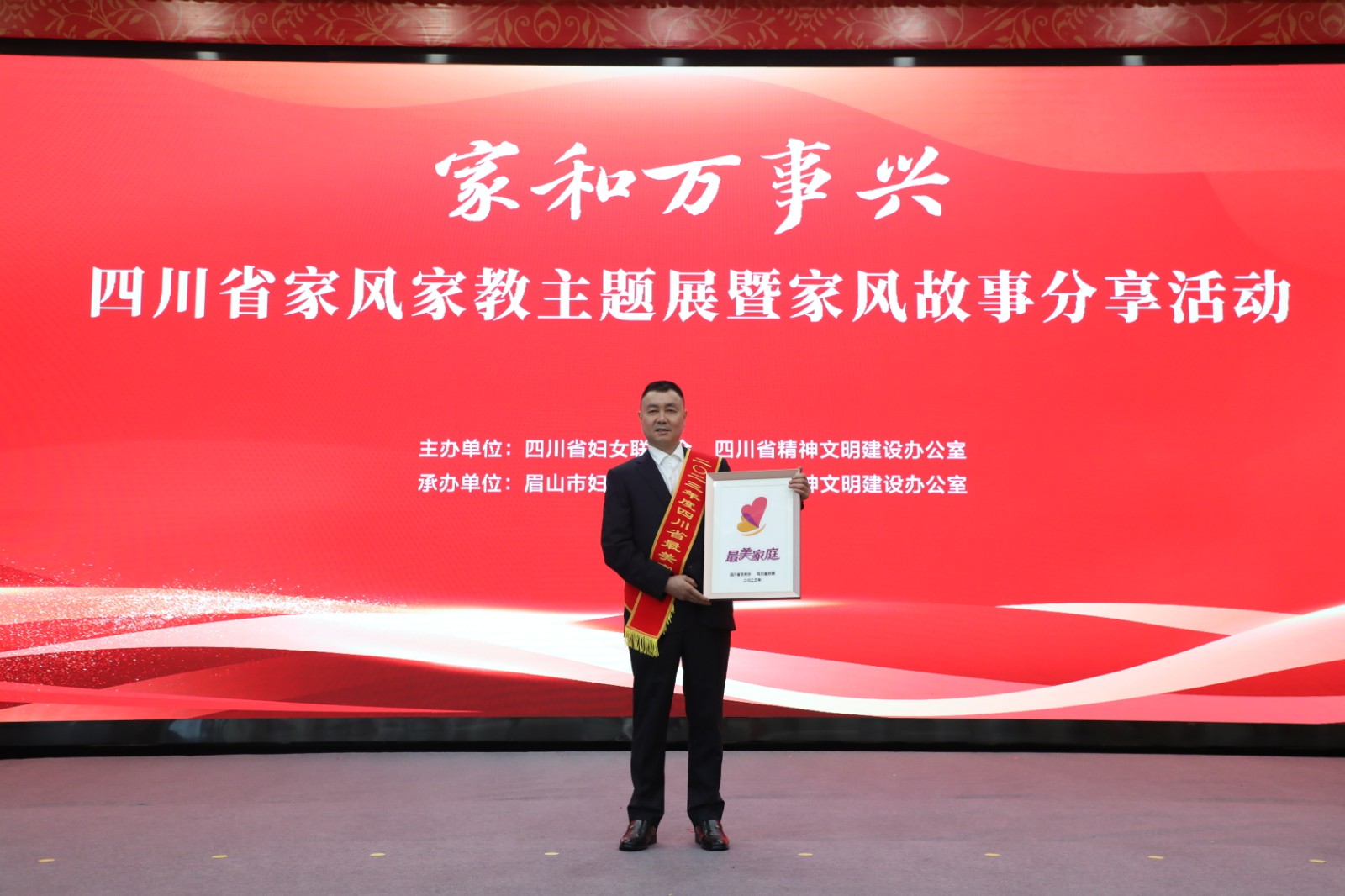 Ô˶¯ÏÖ³¡£¬Ê¡ÎÄÃ÷°ì¸±Ö÷Èκúΰ¡¢Ã¼É½ÊÐÈË´ó³£Î¯»á¸±Ö÷ÈÎÍõÔóÎÄΪ×îÃÀ¼ÒÍ¥´ú±í°ä½±¡£Ô˶¯»¹¿ªÕ¹Á˼ҷç¹ÊÊ·ÖÏí¡¢¡°ËÄ´¨Ê¡¼ÒºÍÍòÊÂÐË¡ª¡ª¼Ò·ç¼Ò½ÌÖ÷ÌâÕ¹¡±Æô¶¯ÒÇʽµÈ¡£