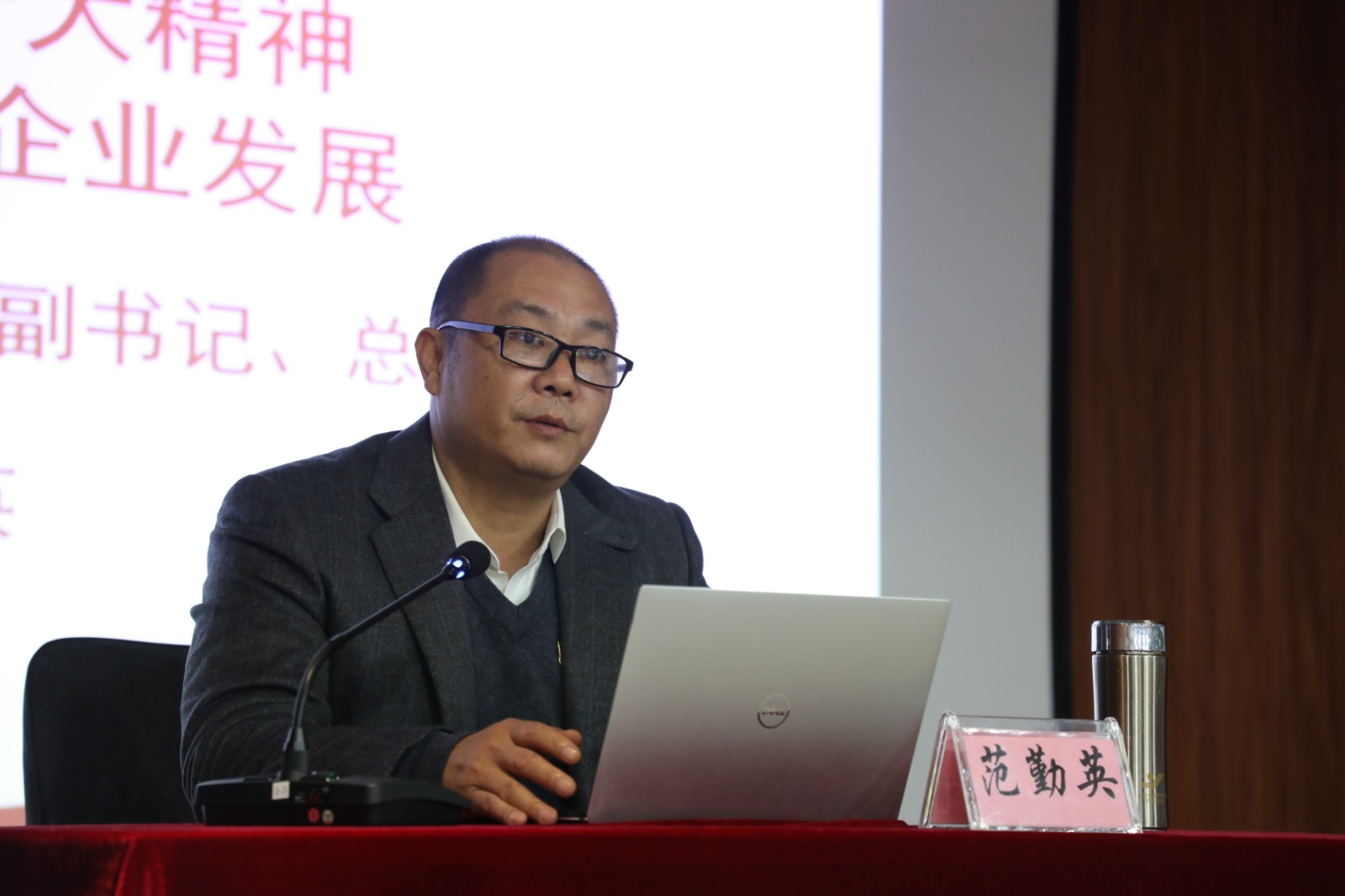 党委副书记、总经理范勤英以《学习贯彻二十大精神 以廉洁建设促企业生长》为题,宣讲了党的二十大精神,建党100多年以来,中国共产党领导全国人民取得了举世瞩目的伟大成绩。我们党立志于中华民族千秋伟业,致力于人类宁静与生长高尚事业,责任无比重大,使命无上庆幸。全党同志务必不忘初心、牢记使命,务必谦虚谨慎、艰苦斗争,务必敢于斗争、善于斗争,坚定历史自信,增强历史主动,谱写新时代中国特色社会主义越发绚丽的华章。